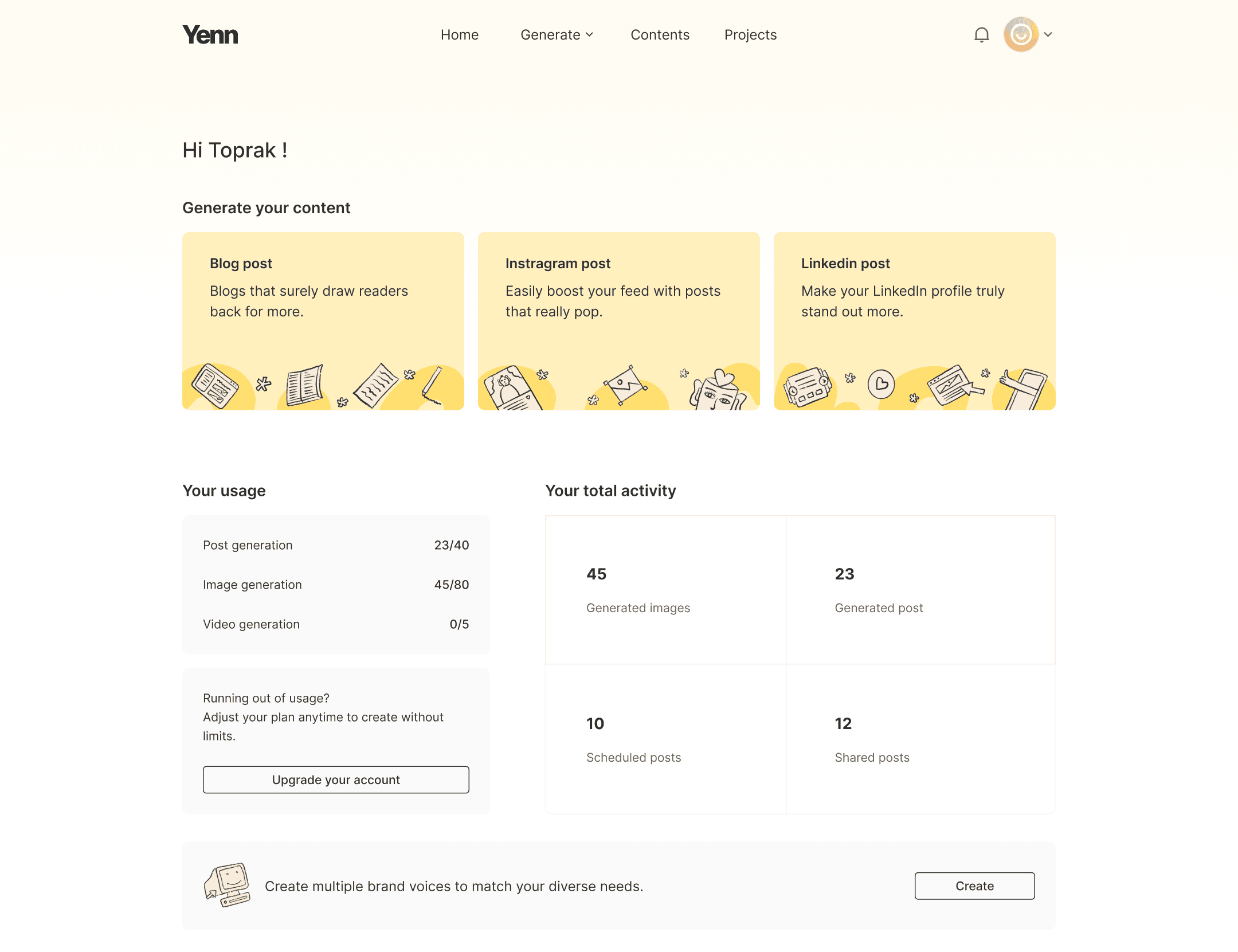 Unlike generic AI tools, Yenn understands your brand voice, analyzes trends, and generates content that truly fits your style.
