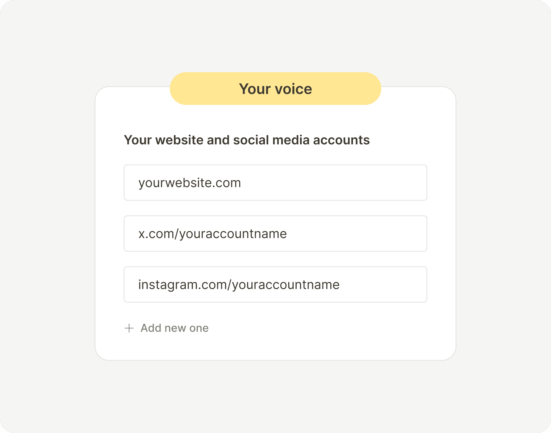 Yenn doesn't ask you to describe your voice. It reads your existing content and builds a model of it.