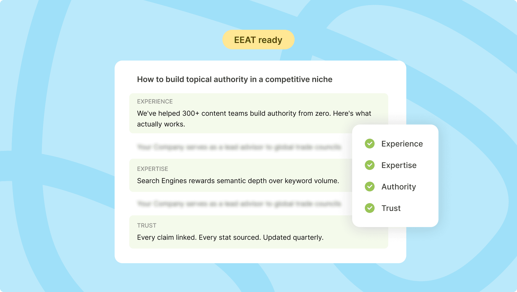 EEAT isn't a feature we added. It's one of the reasons we built Yenn.
